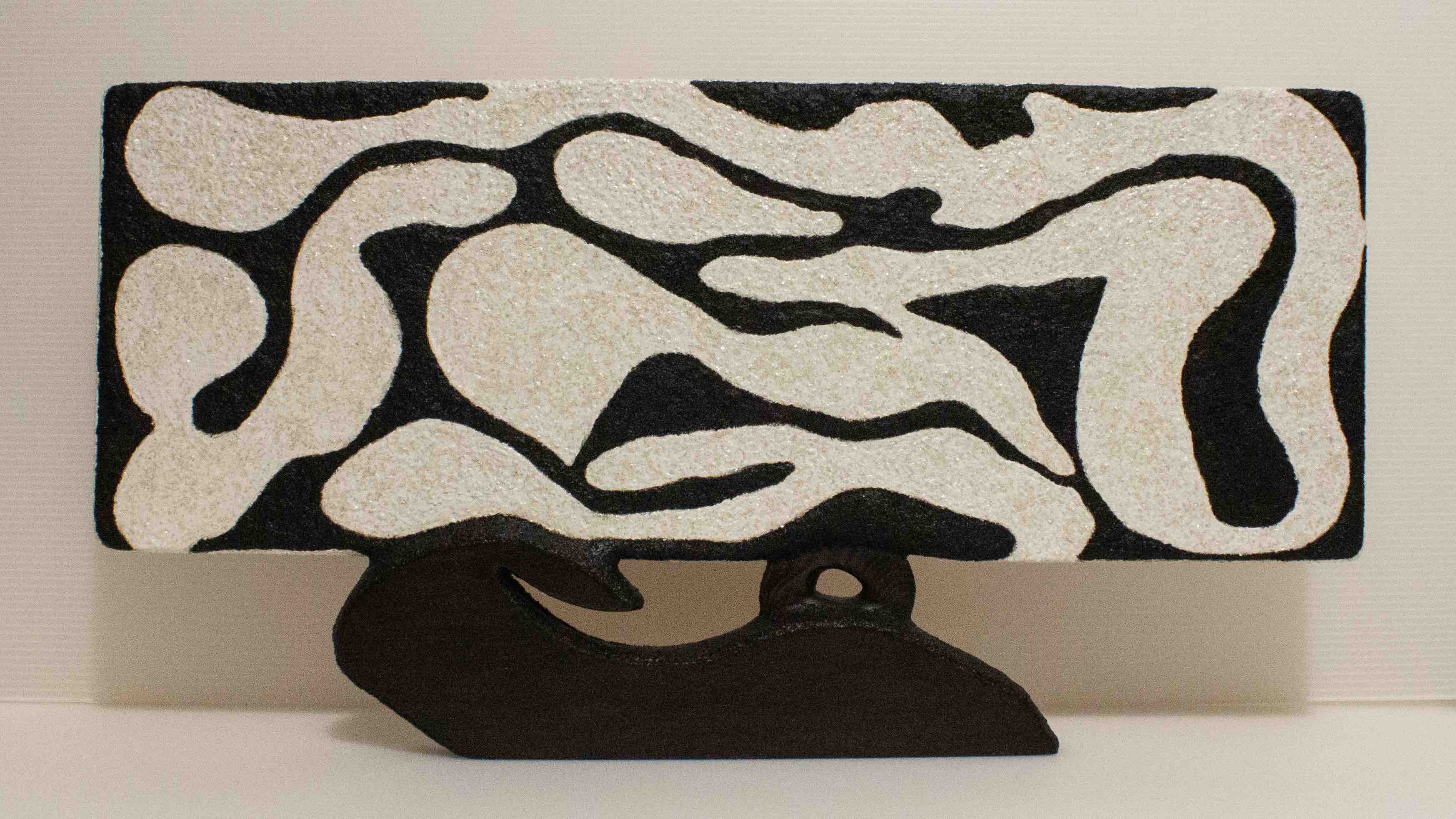 reclaimed redwood, high-density polyethylene, sawdust, adhesive, resin-spackle, acrylic, ink